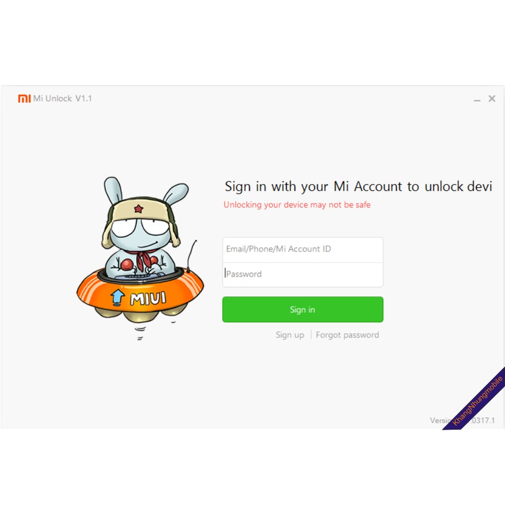 Nhập tài khoản MI đã được cấp phép unlock